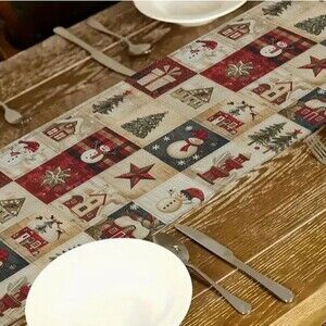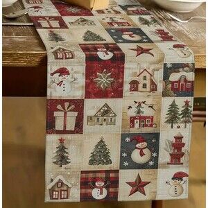 Country Christmas Table Runner 13x72in Linen Snowman Christmas trees