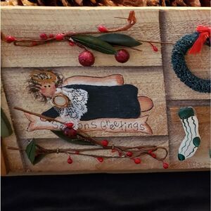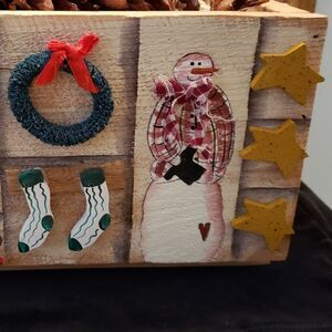 Country Christmas Wooden Box Decor w/Pinecones