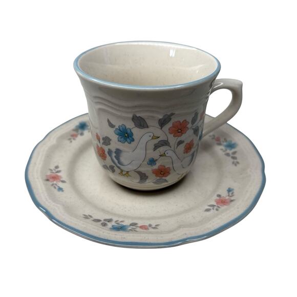 Country Classics by Action 1988 Goose Floral Cup & Saucer Set | Vintage Japan