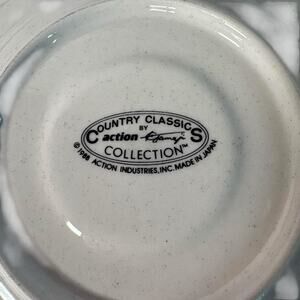 The cup and saucer are part of the Country Classics Collection by Action Industries, often paired with other Country Goose or Heartland-style dinnerware.
