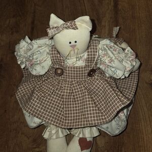 Country Cloth Shelf Sitter Kitty Cat In Dress Heart