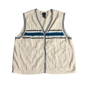 Country Club by Koret Sweater Vest Mens Size XL White Blue Cardigan Cotton