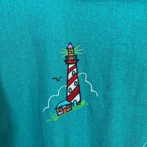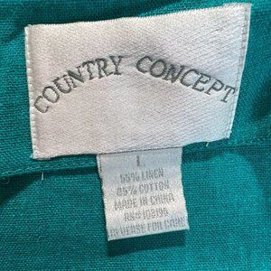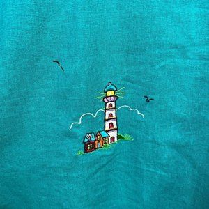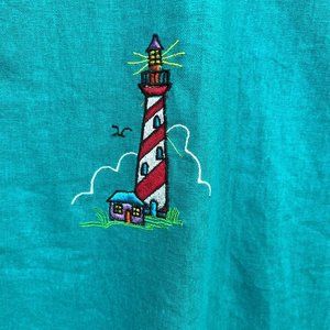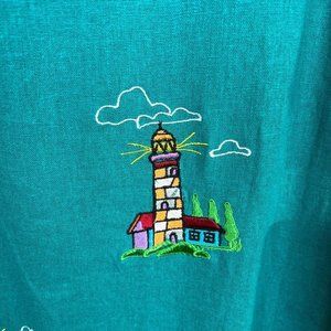 Country Concepts Dress Large Teal Green Linen Cotton Midi Shift Lighthouse New