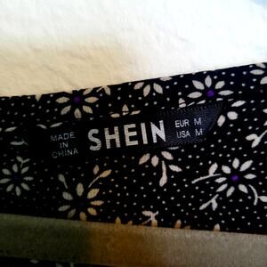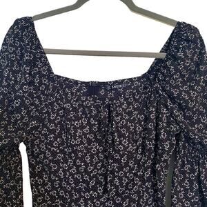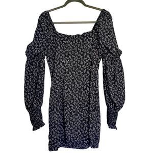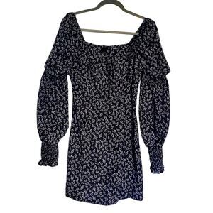 Country Cottagecore Dress M Black White Lavendar Daisy Floral Puff Sleeve Farm