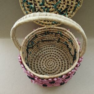 Floral Wicker Basket 11 inches High with Attached Pink Flowers