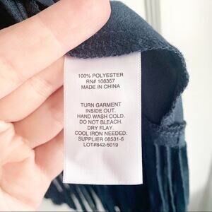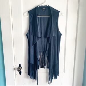 a.n.a. Faux Suede Fringe Vest Western Style S Blue Dress up a pair of jeans and a plain white tee with this cute piece! 100% polyester. Outerwear. Faux suede. Size small. Good preowned condition.