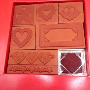Country Hearts Rubber Stamp Set + Happy Birthday Stamp Set +2 Ink Pads Vintage