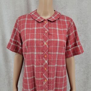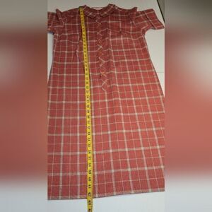 Country Miss Vintage 60's Red Plaid Shirt Dress Pointed Flat Collar Modest