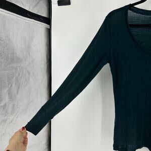Country Road Australian Wool Womens M Base Layer Top Long Sleeve V-Neck Green