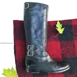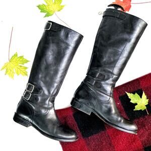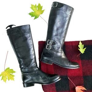 black leather riding boots, Country Road boots, equestrian style boots, fall staple shoes, silver buckle boots, classic black boots, minimal chic boots, tall black boots, horse riding inspired, structured fall boots, fall 2025 fashion edit, timeless footwear, preppy minimalist boots, RL aesthetic, Country Road shoes