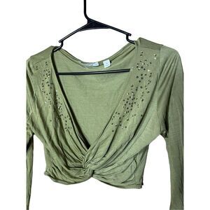 Country Road Green Sequin Twist Front Crop Top Size M. Good condition. Sequins on the front. Long sleeve. Twist front. Very Y2K Style.