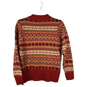 Country Rose Wool Blend Red Fair Isle Fox Print Knit Cardigan Women's Size 8