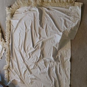 Ruffled Curtains, panel width is 84 inches and length is 81 inches. They are beige. I have 2 pairs, selling separately.