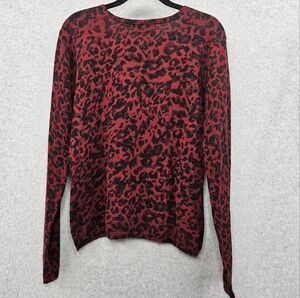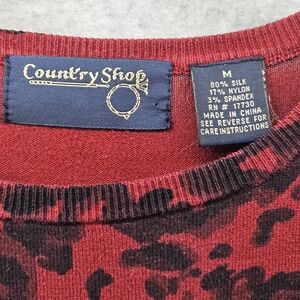 Country Shop Silk Blend Women's Crew Neck Sweater Red Animal Print Size M