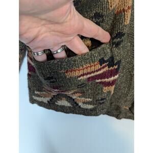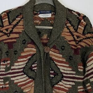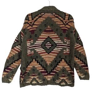 Vintage Country Shop Handknit Cardigan Southwest Print Chunky One Button M