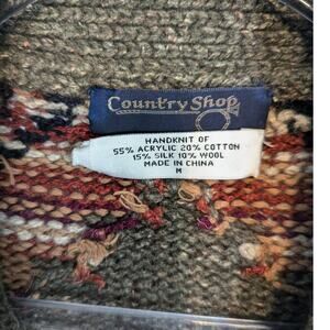 Country Shop Vintage Handknit Cardigan Southwest Print Chunky One Button M