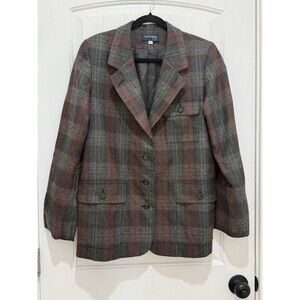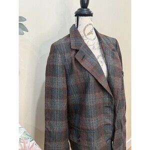 Country Shop Women’s Brown Tartan Plaid Blazer Coat Size M Wool Alpaca Made USA