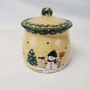 Country Snowman Stoneware Covered Crock with Lid Cookie Jar Original Box