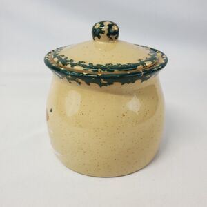 Excellent Condition!!! There is a small bare spot on the lip where the lid goes. Not cracked or chipped.