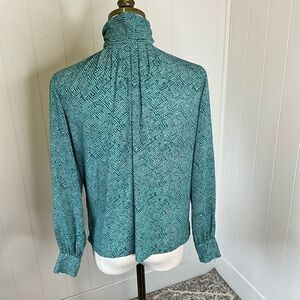 Country Sophisticats by Pendleton Womens 6 High Neck Blouse Green Woven Print Long Sleeve