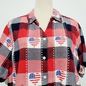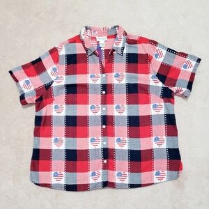 Country Store 4th of July Patriotic Heart 100% Cotton Shirt Women Size 1X