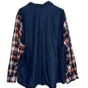 Country Store Denim Shirt With Plaid Sleeves Button-Down 3X 100% Cotton Womens