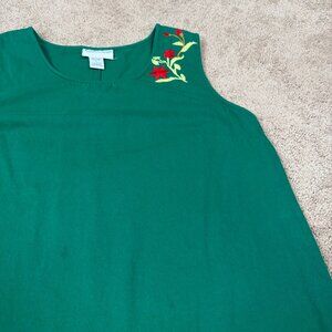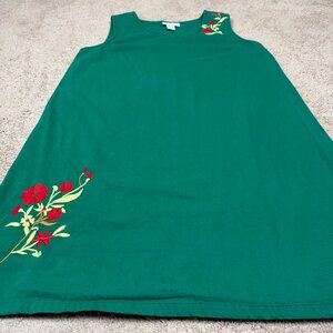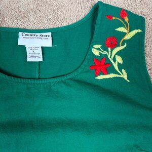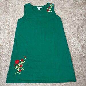 Country Store Dress Womens L Green Embroidered Floral Holiday Tropical Vintage
