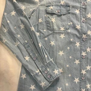 Country Store Light Wash Denim w White Stars Button Up Shirt | Size M