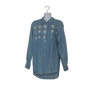 Country Store Women's Size M Button Up Shirt Chambray Embroidered Long Sleeve