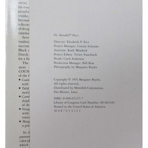 Country Style Stenciling is a book by Margaret Boyles. Meredith Press published it in 1991. Complete instructions from lists of supplies, creating your own stencils, patterns and more. There are 168 pages in this 11"x9"x1" Hard cover book with dust jacket that weighs 1lb 14 oz.