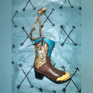 Set of 4 Country Western Cowboy Boot Ornaments Approximately 2.5" tall x 2.25" wide (see pictures) Pre-owned in EUC Box t