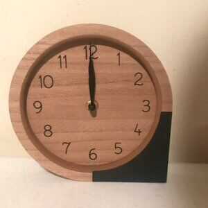 Here is a new country design smaller tabletop clock, this is made of wood and requires 1 AA battery that is not included, is a brown wood finish with black , it measures 6.8 inch high by 6.8 inch wide and 1.3 inch thick, is a nice smaller clock for a counter or stand, etc