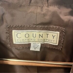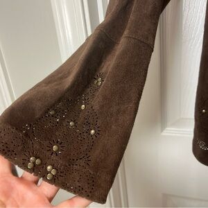 County Clothing Company Vintage Women Jacket, Leather, Studded, punch hole design, Eye and hook closure, chocolate brown, lightweight, lined, great for western, cowboy, biker, or just casual stylish wear