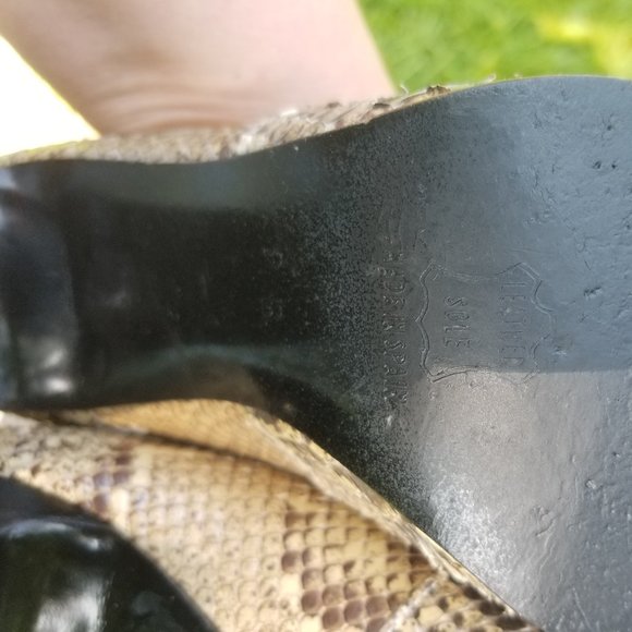 Coup D'Etat "3 Fame " shoes Unique real snakeskin 9 M ALL LEATHER made in Spain. They Python or real snakeskin leather they do not make shoes like this anymore, so It is top of the line. they have silver insole made of leather, no peeling . Silver piping around opening. And colors are so beautiful, silver snakeskin and grey and off white , light beige color. Over all in great preowned condition. if you between 8.5 and 9 sizes it will fit great too. insole 10 "heel 4" great support arched hell
