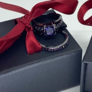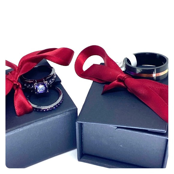 Includes Boxes for her and for him, Size 6 women’s two piece titanium set and men’s matching titanium ring size 11 perfect couple engagement|promise ring|marriage set.