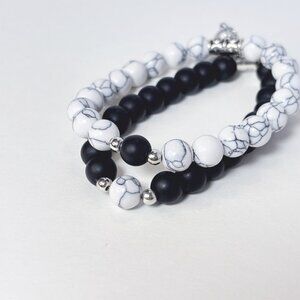 🖤 Classic Edition (Howlite & Black Obsidian) – Our best-selling timeless couple's set.