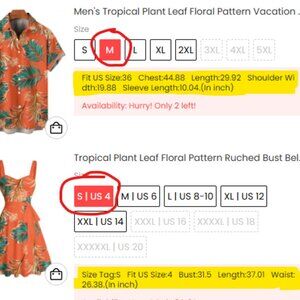 Couples matching vacation outfits. Woman's dress size Small and Men's shirt size Medium. Brabd new, never worn, I ordered the wrong size for my husband.