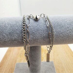Each bracelet has 1/2 of the magnetic heart and 2 different style metal chains