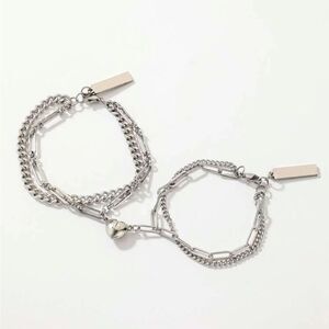Couple silver magnetic bracelets.Valentine’s gift