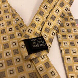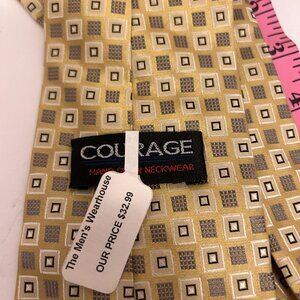 Elevate your professional style with this Courage hand-sewn necktie from The Men’s Wearhouse, featuring a sophisticated gold and gray geometric square pattern. Perfectly tailored for business, weddings, or formal occasions, this tie offers a timeless blend of craftsmanship and modern polish.