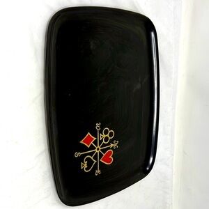 This is a gorgeous Couroc Black Bakelite Tray. Bakelite with inlaid brass and red enamel. Card Suits of Diamonds Clubs, B