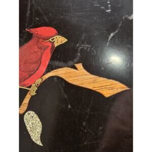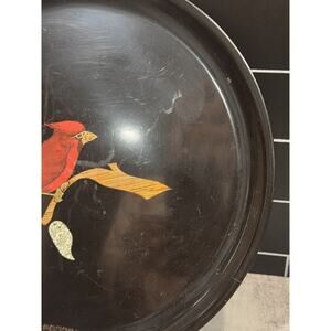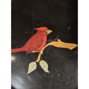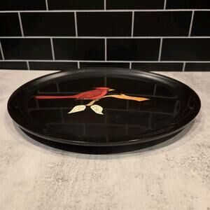 Vintahe Couroc of Monterey CA. Red Cardinal /Bird on Branch | Round Black Tray Platter 10½" x .75" | Good USED Vintage Condition | *Flaw, there's some light signs of previous use | Please refer to the photos for the condition | Weight before packaging: 1 lb.