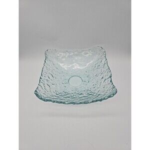 The Couronne Co. Recycled Glass Green Blue Colored Large Square Serving Bowl from Spain is a unique piece of art glass. It has a pebbled ice look pattern.