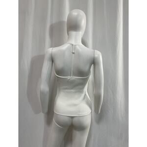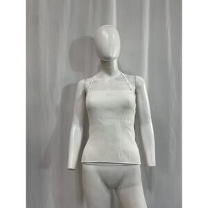 Courreges 'Strap' White Rib Knit Tank Top Size S: halterneck styling with adjustable shoulder straps, ribbed knit fabric.