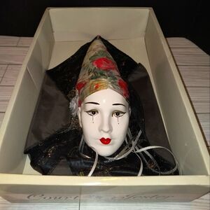 Court Jester Collection Ceramic Mardi Gras Painted Wall Hanging Mask Home Decor. Has some wear from age and storage. Sold as is.