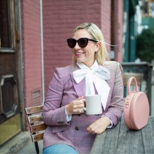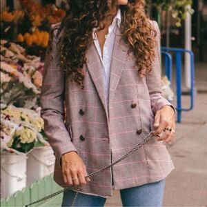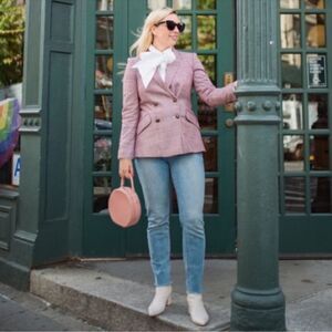 Court & Rowe 0 White Fuchsia Burgundy Plaid Houndstooth Double Breasted Blazer