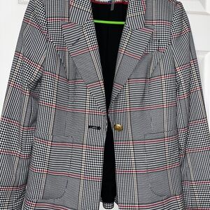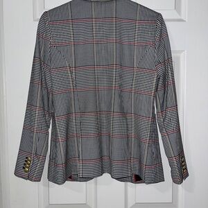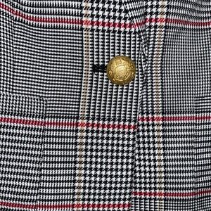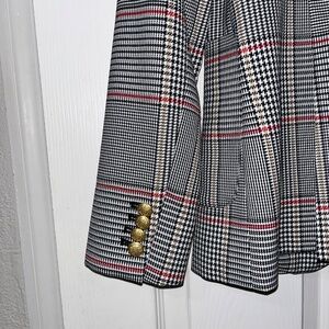 Court & Rowe Houndstooth Plaid Single Button Blazer. Black, red and white. Pleated back. Single gold button closure. 2 front pockets. Gold buttons on sleeves. No signs of wear.