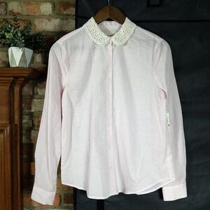 Court & Rowe Pale Pink Button Down With Crochet Lace Collar