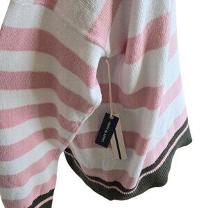 NWT Court & Rowe pink and white striped crew neck sweater with contrast dark green hems. Y2K color combination. Drop shoulder, relaxed fit. 100% cotton. No flaws or stains. Size 2X. Originally sold at Nordstrom. Made in China.