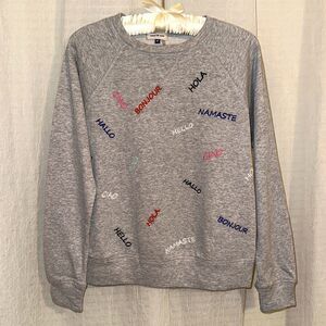 Court & Rowe XS “Hello” in Many Languages Embroidered Crewneck Gray Sweatshirt